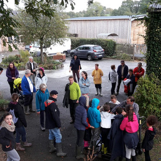 En un beau dimanche d'automne, sur l'invitation d'Emmanuel,membre de K'elka, nous avions rendez-vous pour une belle journée de partage à Ernée. "On bèl lyannaj", en créole guadeloupéen. A notre arrivée, nous avons été chaleureusement accueillis par nos hôtes, Catherine et Florent Gendron, qui nous ont invités à partager leur table en famille. Tout ou presque vient de la ferme, de l'apéritif au fromage : dégustation de pommeau, cidre, jus de pomme, agneau et fromage... Le tout cuisiné par les mains expertes de Catherine et commenté par Florent. D'ailleurs tout au long de la journée, en véritable passionné, Florent ne tarira pas d'explications sur les produits, leur transformation et le fonctionnement de la ferme. A l'arrivée des ramasseurs de pommes, c'était à notre tour de les accueillir au son du ka. Avant de jouer nous leur avons décrit nos instruments, nos tambours ka et notre musique, le gwoka. Puis, chacun a chaussé ses bottes, direction le verger pour cueillir les pommes. Après le remplissage dans la bonne humeur de deux remorques, nous sommes retournés à la ferme pour une démonstration de pressage et de fabrication de jus de pomme. Pour clôturer cette journée déjà bien remplie, le son des tambours ka a, de nouveau, résonné dans la campagne mayennaise, devant un public acquis au partage. Merci encore à Catherine et Florent, nous vous invitons vivement à les rencontrer dans leur belle ferme pédagogique de La Gasselinais.
